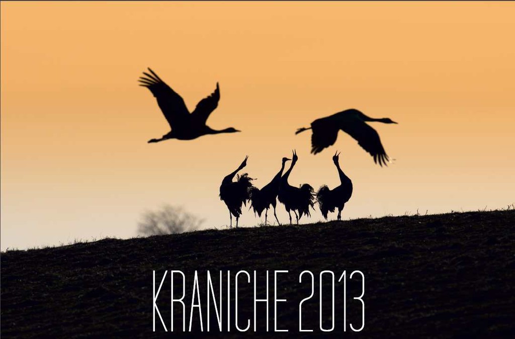 Acht Postkarten mit Kranichmotiven auf starkem Karton runden das Erscheinungsbild des Kalenders ab.