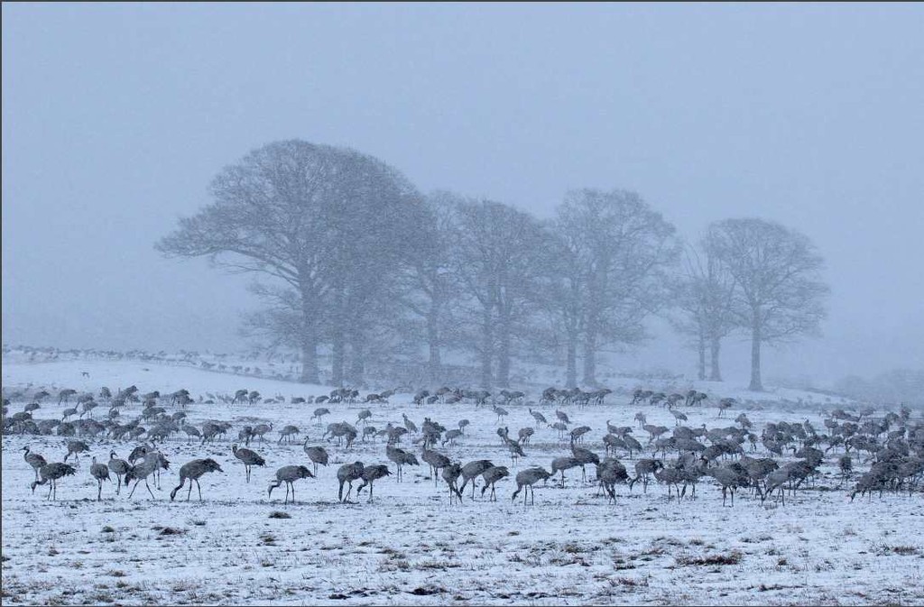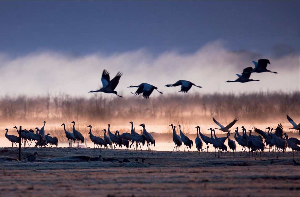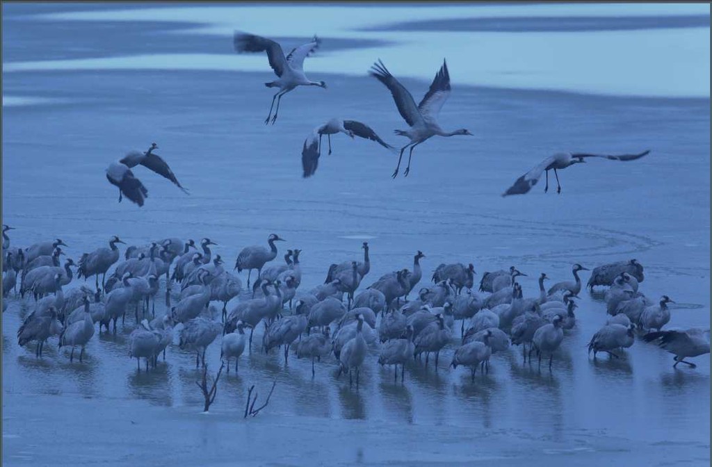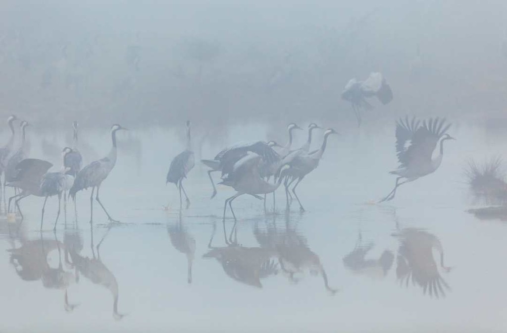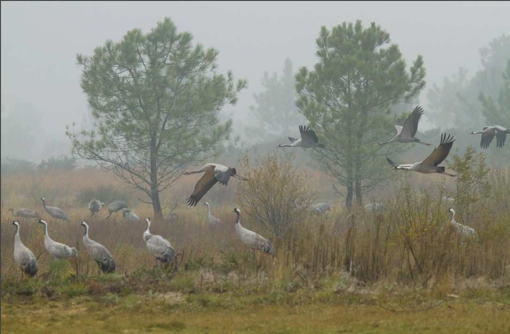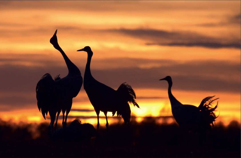 Hinweise zu Naturschutzeinrichtungen in verschiedenen Rastgebieten sowie Berichte zur Lebensweise der Kraniche