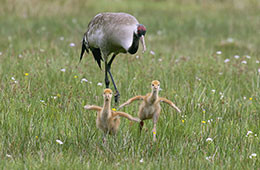 Acht Postkarten mit Kranichmotiven auf starkem Karton runden das im neuen Layout gestaltete Erscheinungsbild des Kalenders ab.